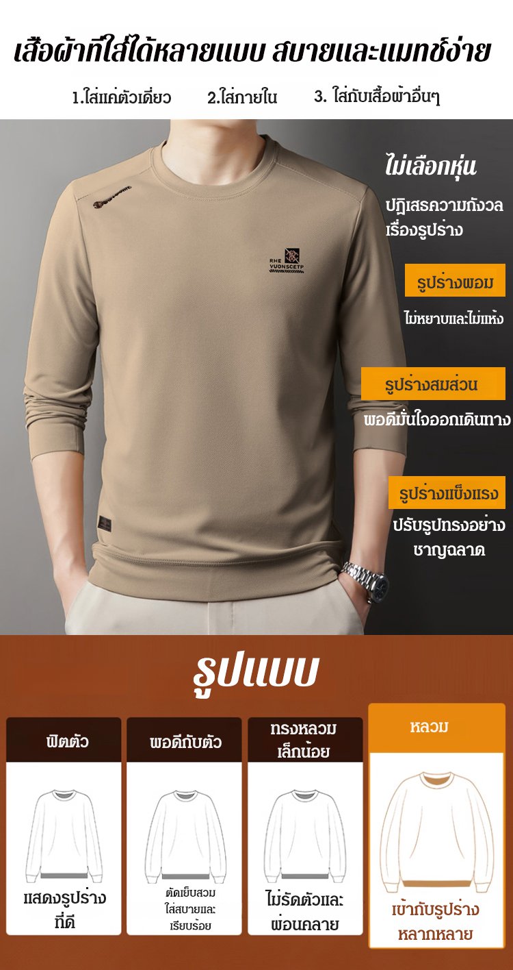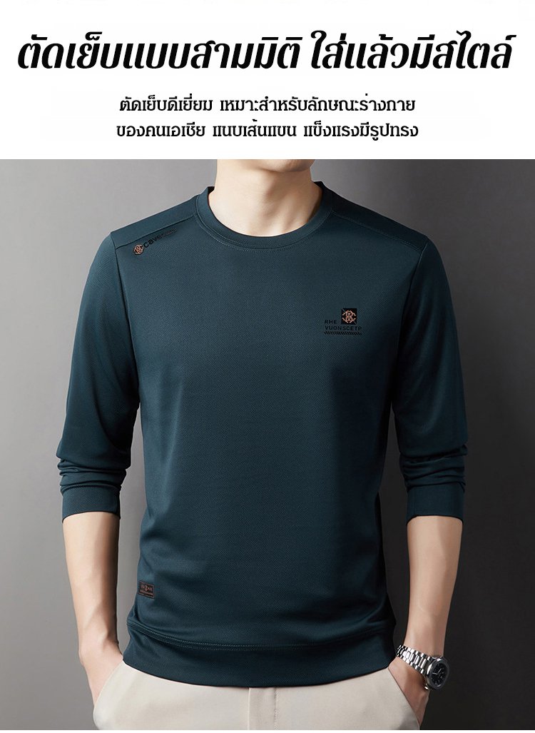 【แบรนด์ธุรกิจระดับสูง】เสื้อสเวตเตอร์คอกลมตัดเย็บทรงสามมิติของผู้ชาย